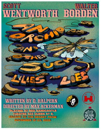 A surreal, darkly comic journey into the desert — and into the fragile rituals of aging, masculinity, friendship, and the human desire to control one’s end — An Orchid and Other Such Lilies and Lies tells the story of two lifelong friends, their death pact, and the beautiful tragedy of having lived. Two nameless old friends (Walter Borden and Scott Wentworth) drive out into the desertscape with a list of drugs, their old year books, and the memories of each other’s lives to witness the intimate and planned moments of each other’s deaths. Moments of laughter, pain, betrayal, love, and haemorrhoids paint an in-depth picture of what it means to be a man, to be a friend, and to be alive.