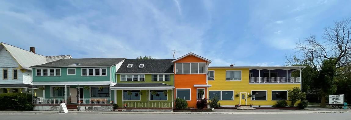 Hotel Wolfe Island is a boutique, waterfront destination located in the village of Marysville, just a short ferry ride from Kingston, Ontario, offering a unique blend of historic charm, live music culture, and locally driven hospitality. Originally a landmark dating back to the 19th century, the property has been thoughtfully revitalized into a modern yet character-rich space that emphasizes sustainability, community, and the arts. The hotel features comfortable accommodations alongside a vibrant on-site restaurant and cafe focused on farm-to-table cuisine, highlighting fresh, locally sourced ingredients from the surrounding region. Beyond lodging, Hotel Wolfe Island has built a strong reputation as a cultural hub, regularly hosting live performances that range from folk and indie acts to touring national and international artists, making it a standout venue within Eastern Ontario's music scene. Guests can enjoy scenic views of the St. Lawrence River, relaxed social spaces, and an atmosphere that balances laid-back island living with curated experiences, whether visiting for a weekend getaway, a live show, or a culinary-focused escape, positioning the hotel as both a destination stay and a cornerstone of Wolfe Island's creative community.