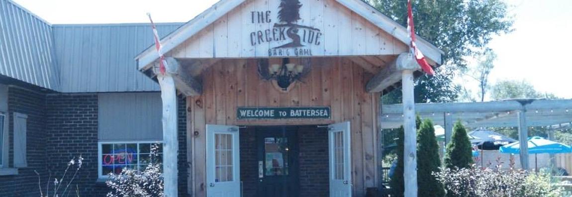 Creekside Bar & Grill is a locally owned pub-style restaurant located in the small village of Battersea, about 15 minutes north of Kingston. Situated at 2261 Wellington Street near the waterfront area along the Napanee River, the restaurant has become a popular gathering spot for residents and visitors in the rural communities of South Frontenac. The Creekside Bar & Grill offers a casual Canadian-style menu focused on classic pub fare such as burgers, wings, fish and chips, wraps, nachos, and sandwiches, alongside a selection of beer, cocktails, and daily drink specials. Known for its relaxed and welcoming atmosphere, the venue features indoor dining and a seasonal outdoor patio that is particularly popular during the summer months. In addition to food service, the restaurant regularly hosts live music performances and small community events, helping it function not just as a dining spot but also as a local entertainment hub. With strong local reviews and a reputation for friendly service and comfort-style meals, Creekside Bar & Grill has become one of the most recognizable social venues in the Battersea area.